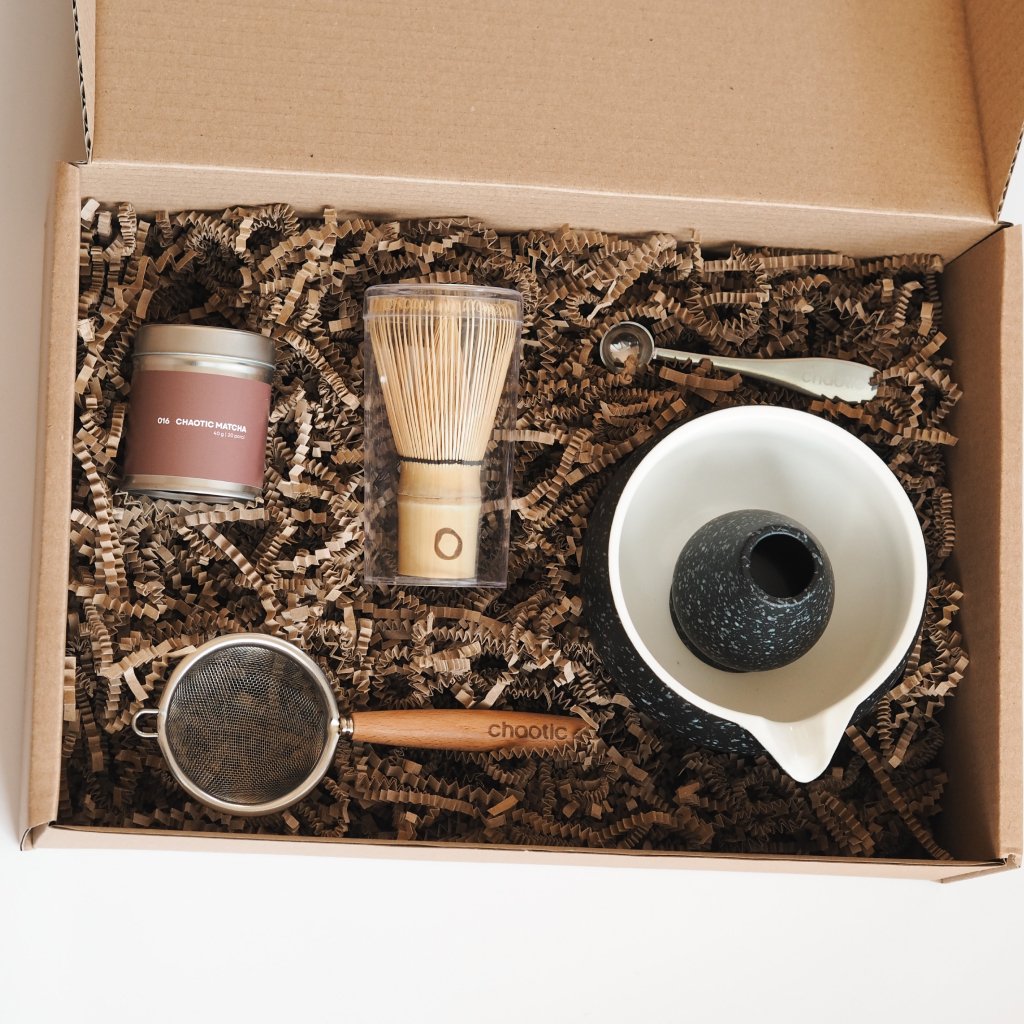 Součástí setu je prémiová matcha v různých velikostech balení, bambusová metlička pro našlehání čaje do jemné pěny, nerezová odměrka, která zjednoduší přípravu i bez nutnosti vážení, keramická miska pro samotnou přípravu, držák na metličku pro její správné usychání a jemné sítko pro prosetí matchy bez hrudek.